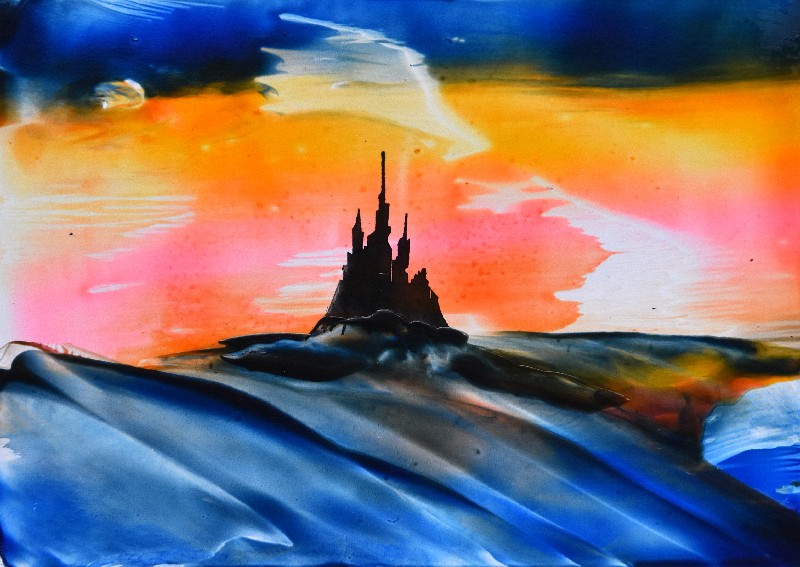 Razítko speciálně vyrobené pro enkaustiskou tvorbu. Používá se na různé kombinované techniky - namočíme do inkoustové barvy, poté obtisk zafixujeme transparentním voskem a dále lze nanášet další světlé vrstvy vosku. Razítko je také možno namočit přímo do roztavené voskové barvy a vytvořit obtisk na papír. Používá se i při malování na enkaustické zahřívací desce.